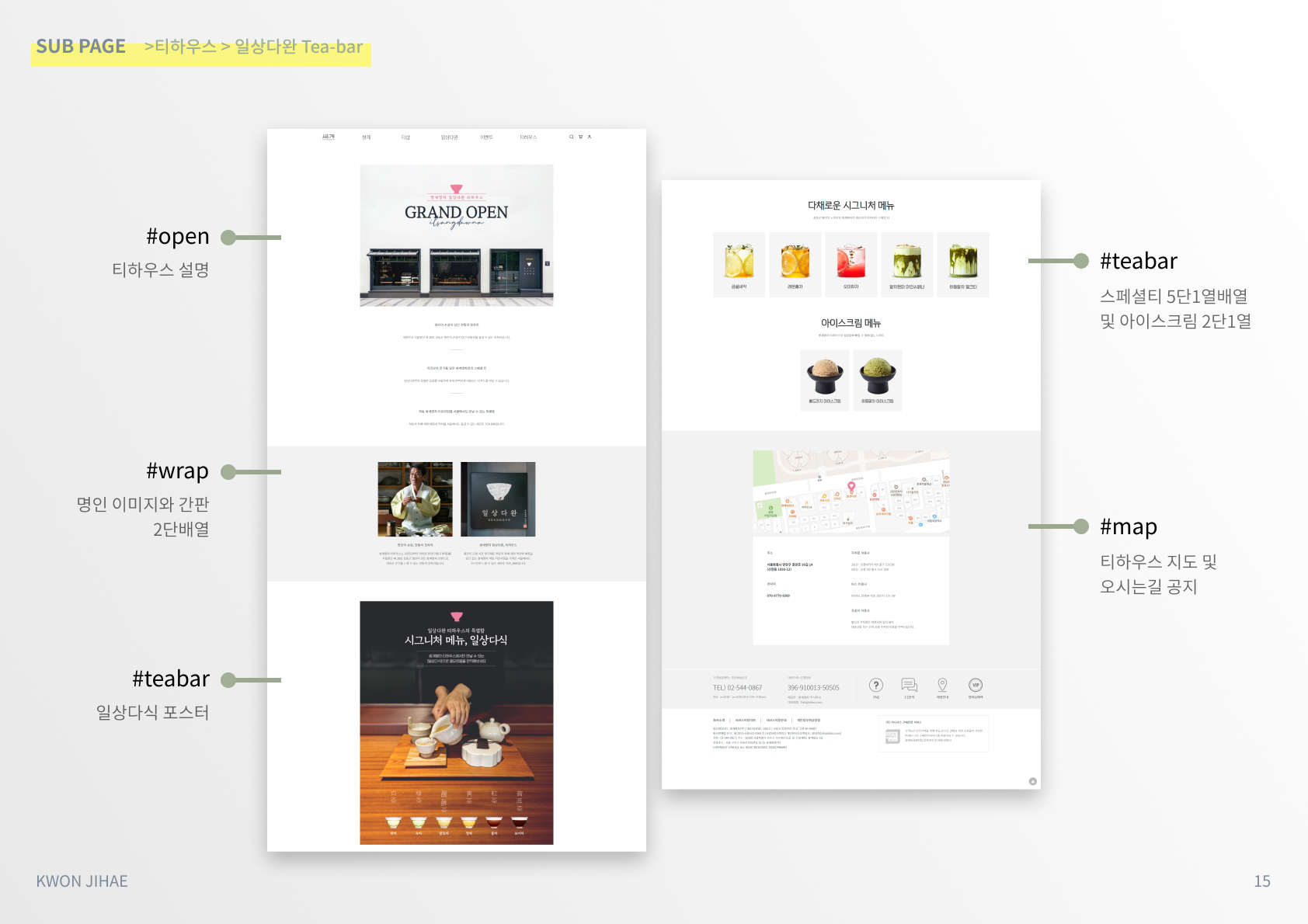 오설록 홈페이지를 참고하여 홈페이지 메인구성 디자인을 쌍계 홈페이지에 맞도록 구현, 스스로 많은 공부가 되었던 첫 홈페이지 작업이었습니다.